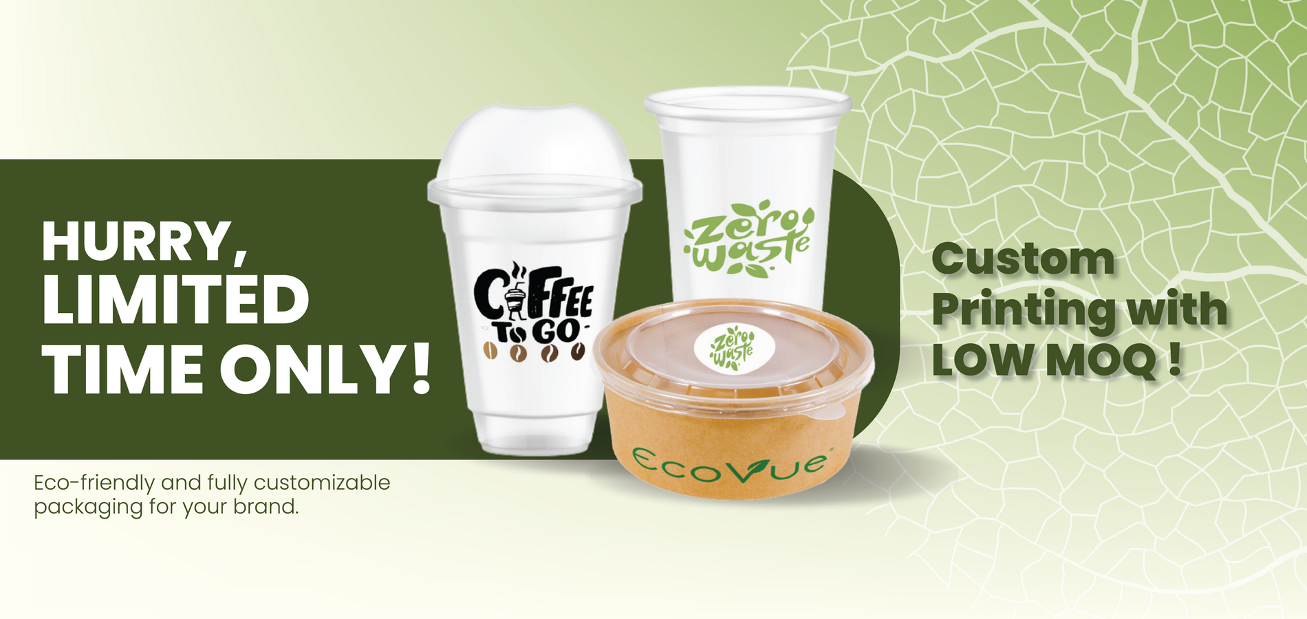 EcoVue is our new, revolutionary line of sustainable packaging products. All EcoVue items are made of polypropylene that is carefully blended with a special biodegradable additive. This enables the plastic to be broken down by microbes at a much faster rate compared to conventional plastics.